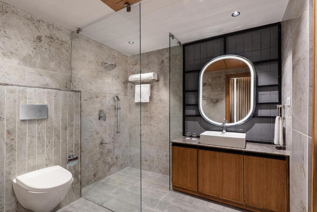 The entire design philosophy is inspired by the five elements of nature – water, earth, wind, fire, and sky. Expansive glass walls, soaring high ceilings, classic white Mehrab arches, handpicked locally sourced Pareva stone, and pristine white marble flooring create a harmonious fusion of indoor and outdoor living. Every cottage and villa opens directly to panoramic views of rolling hills, serene lakes, and endless greenery, delivering an unparalleled sense of peace, privacy, and rejuvenation.