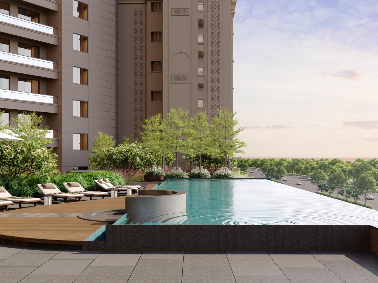 - Infinity Swimming Pool & Deck: A premium water leisure zone to unwind and relax.