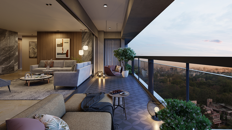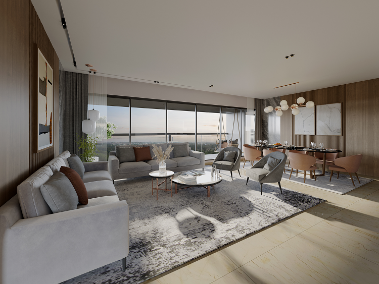 The landscaped surroundings and open spaces enhance the visual and environmental ambience of the development, creating a retreat-like setting within the bustling city. This emphasis on open and green space resonates with contemporary preferences for urban homes that seamlessly blend outdoor and indoor living.